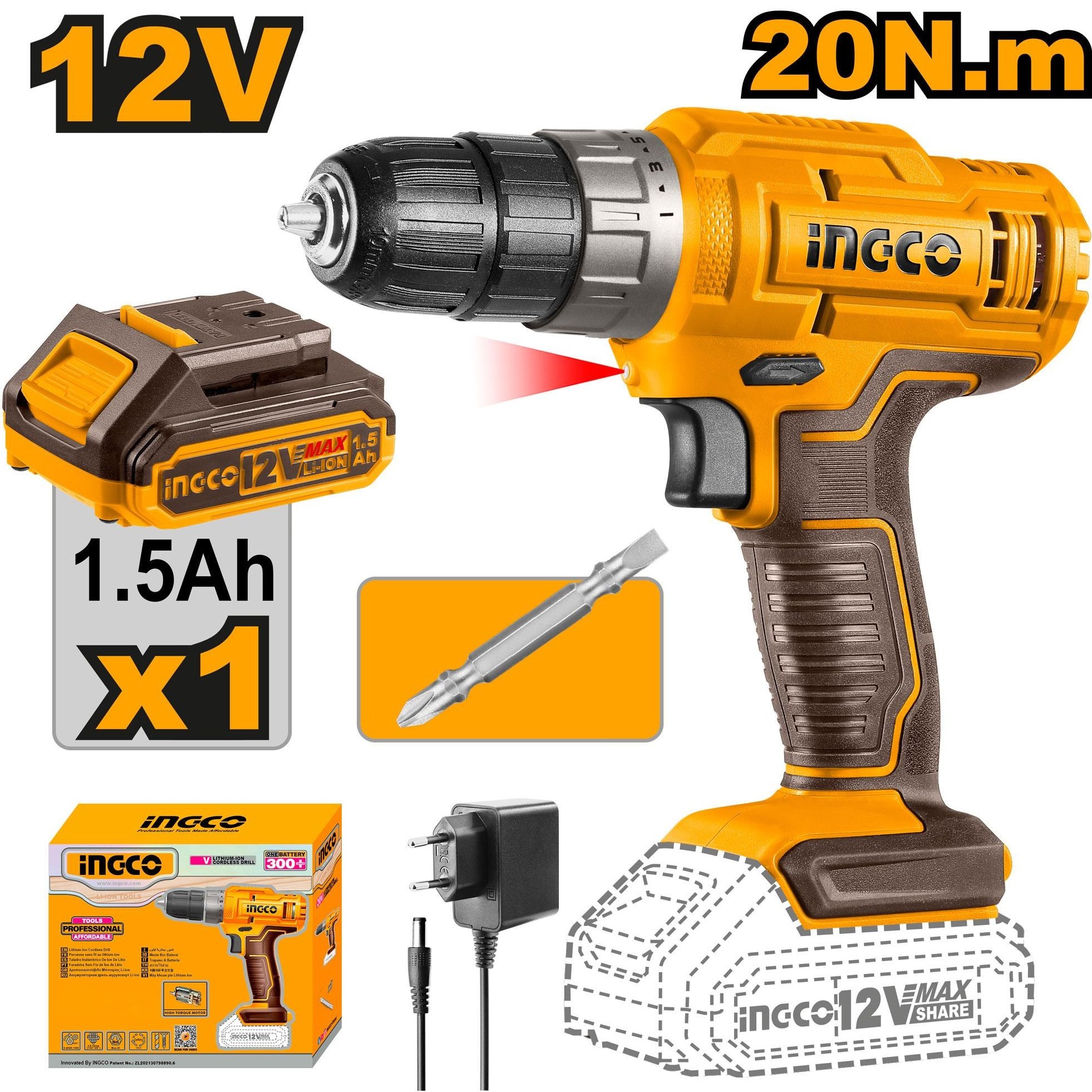 دریل شارژی 12 ولت اینکو دو باطری 12202